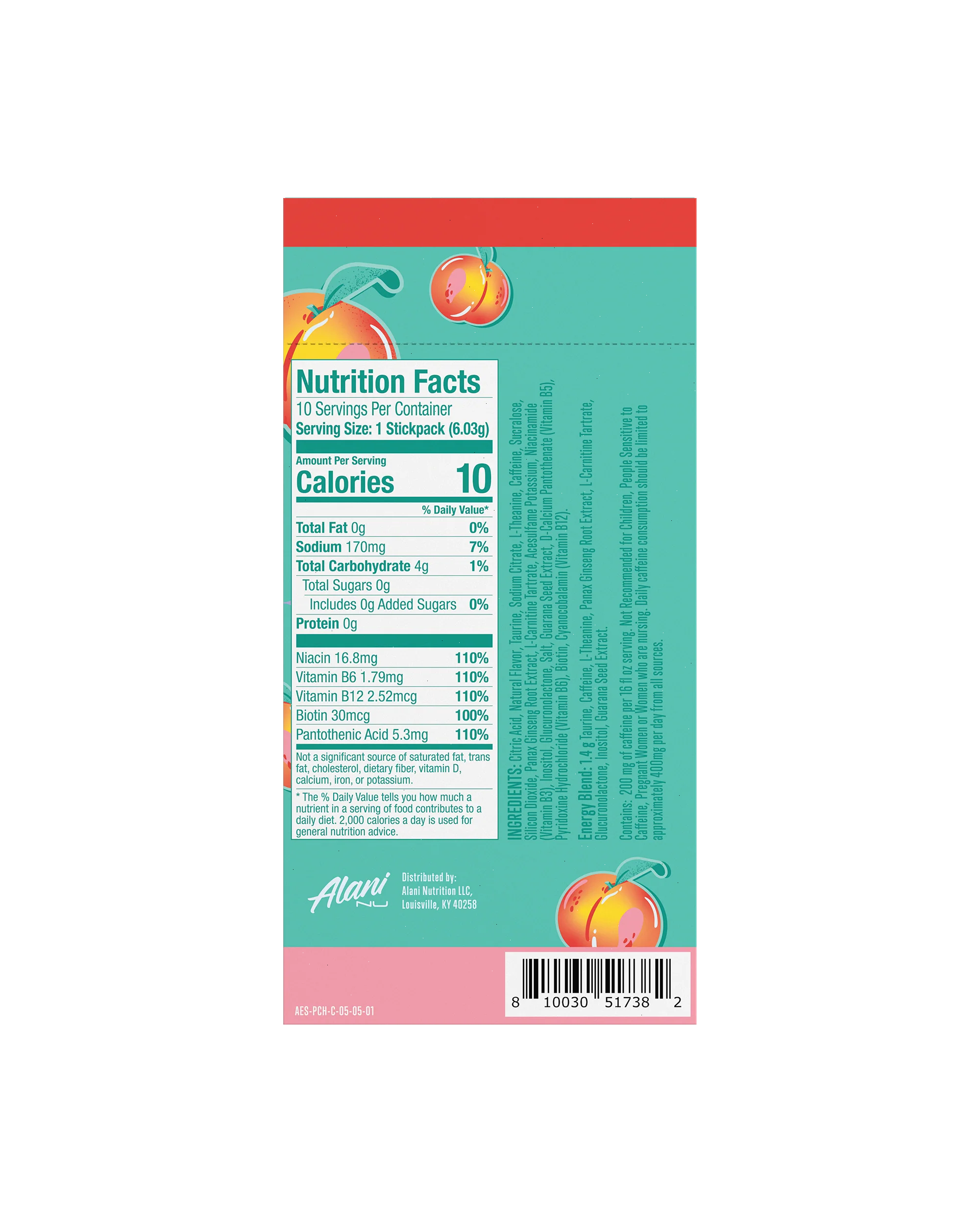 With 200mg caffeine, B vitamins, 0 sugar and a deliciously juicy flavor, Juicy Peach Energy Sticks provide all the perks of your fav Energy on-the-go. Mix with water whenever you need a refreshing sip of good energy bursting with bold fruit flavor.