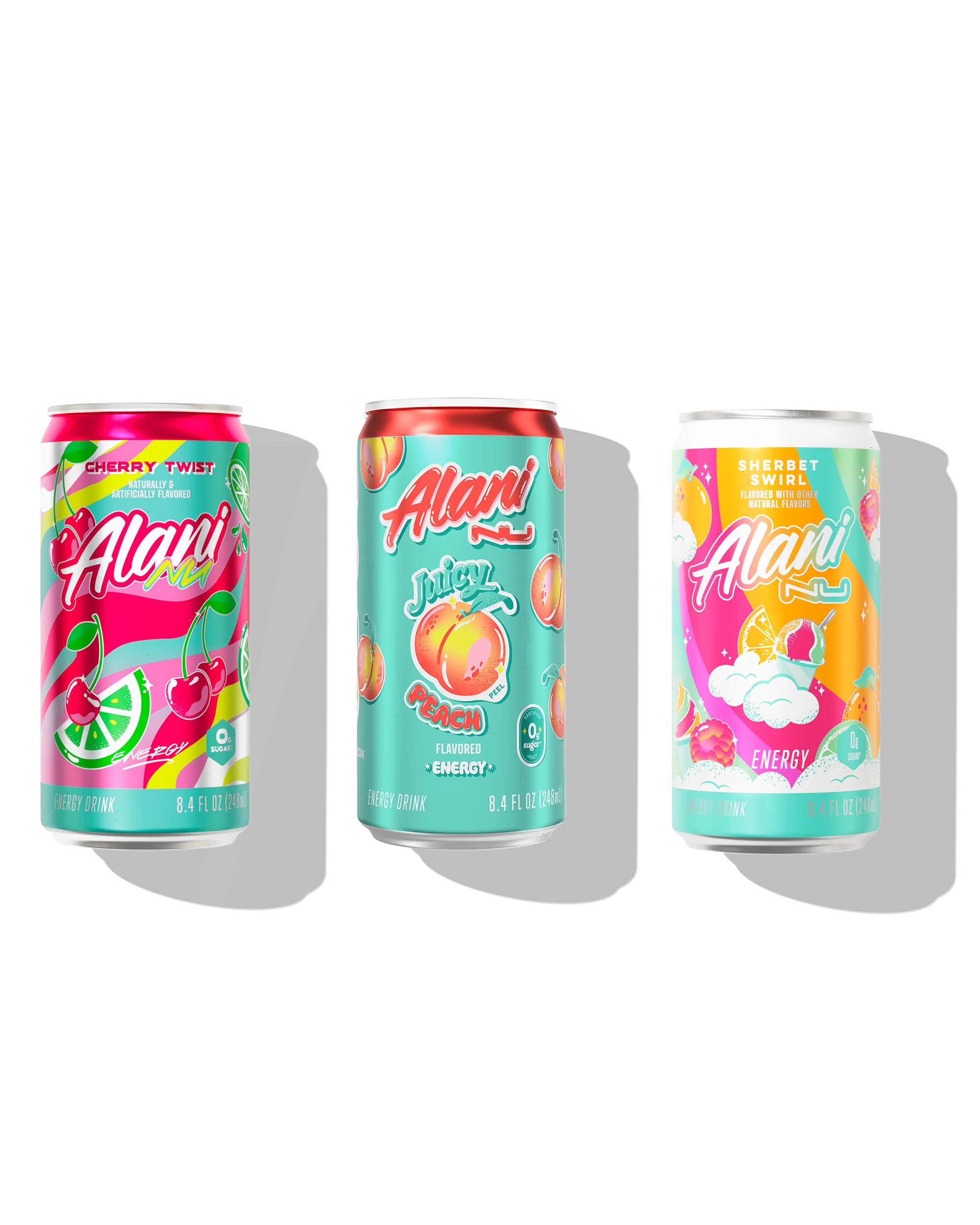 This summer, dial good energy to the perfect volume. Our new Mini Retro Mix sets nostalgia at full blast, sugar at zero, and caffeine at 100mg per serving. We put your fav shorties on shuffle too! With 3 Cherry Twists, 3 Juicy Peaches, and 6 Sherbet Swirls, you'll have choice flavs for days.