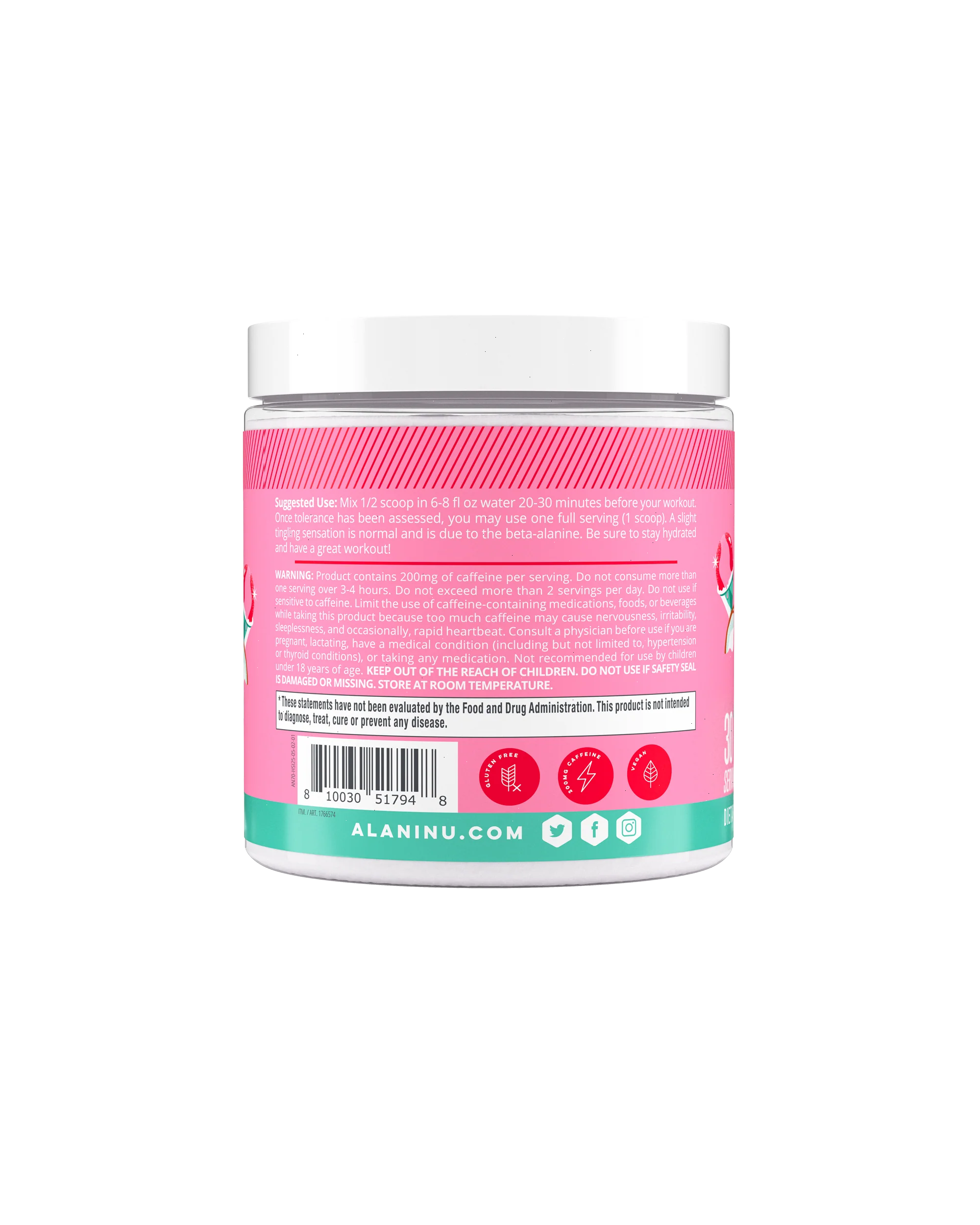 CONTAINS: 200mg of caffeine per serving. Not Recommended for Children, People Sensitive to Caffeine, Pregnant Women or Women Who are Nursing. Daily caffeine consumption should be limited to approximately 400mg per day from all sources. | ||