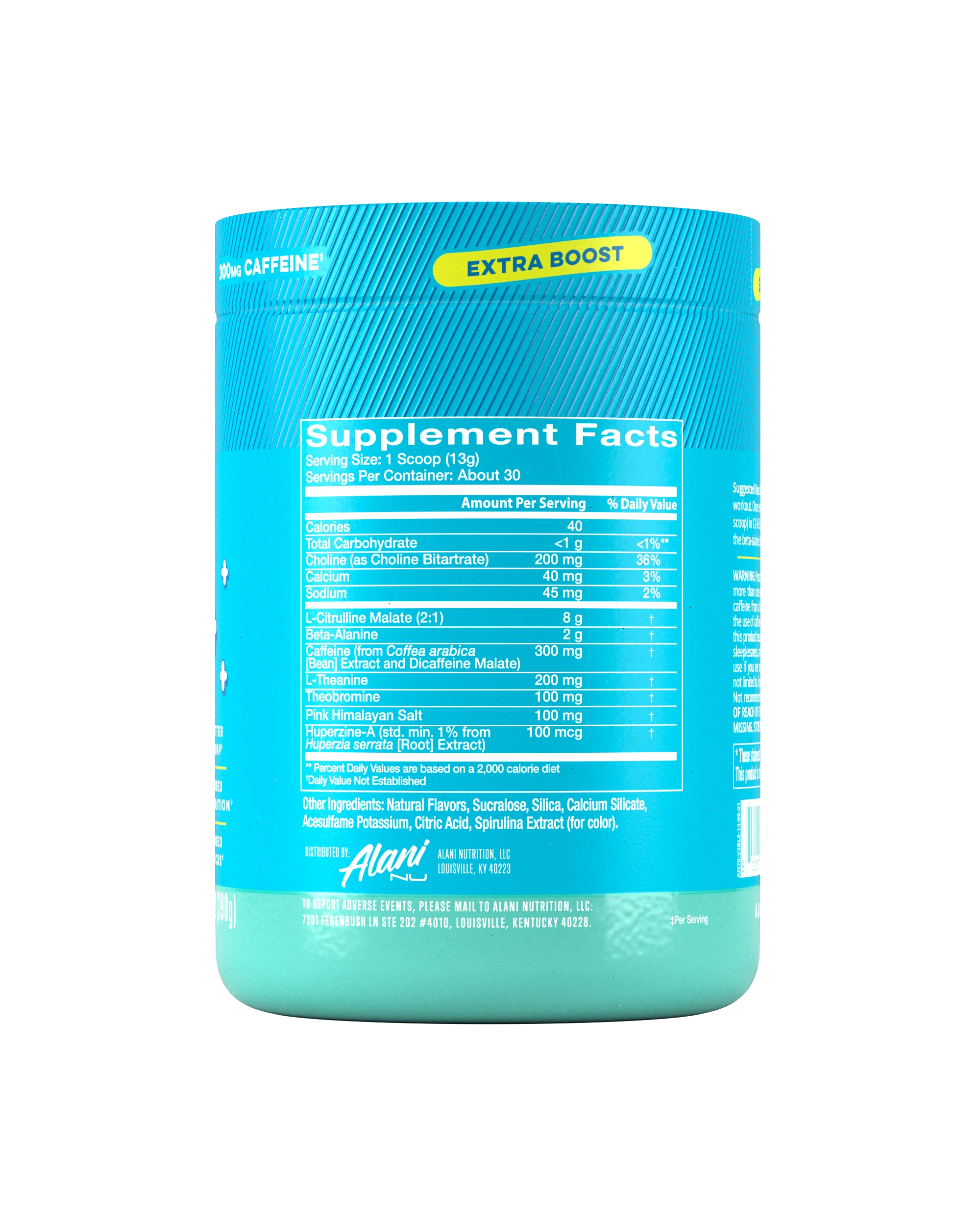 | Ingredients: Natural Flavors, Sucralose, Silica, Calcium Silicate, Acesulfame Potassium, Fruit and Vegetable Juice (for color), Beta-Carotene (for color). CONTAINS: 300mg of caffeine per serving. Not recommended for children, People Sensitive to Caffeine, Pregnant Women Who are Nursing. Daily caffeine consumption should be limited to approximately 400mg per day from all sources.* * These statements have not been evaluated by the Food and Drug Administration. This product is not intended to diagnose, treat, cure or prevent any disease. | ||