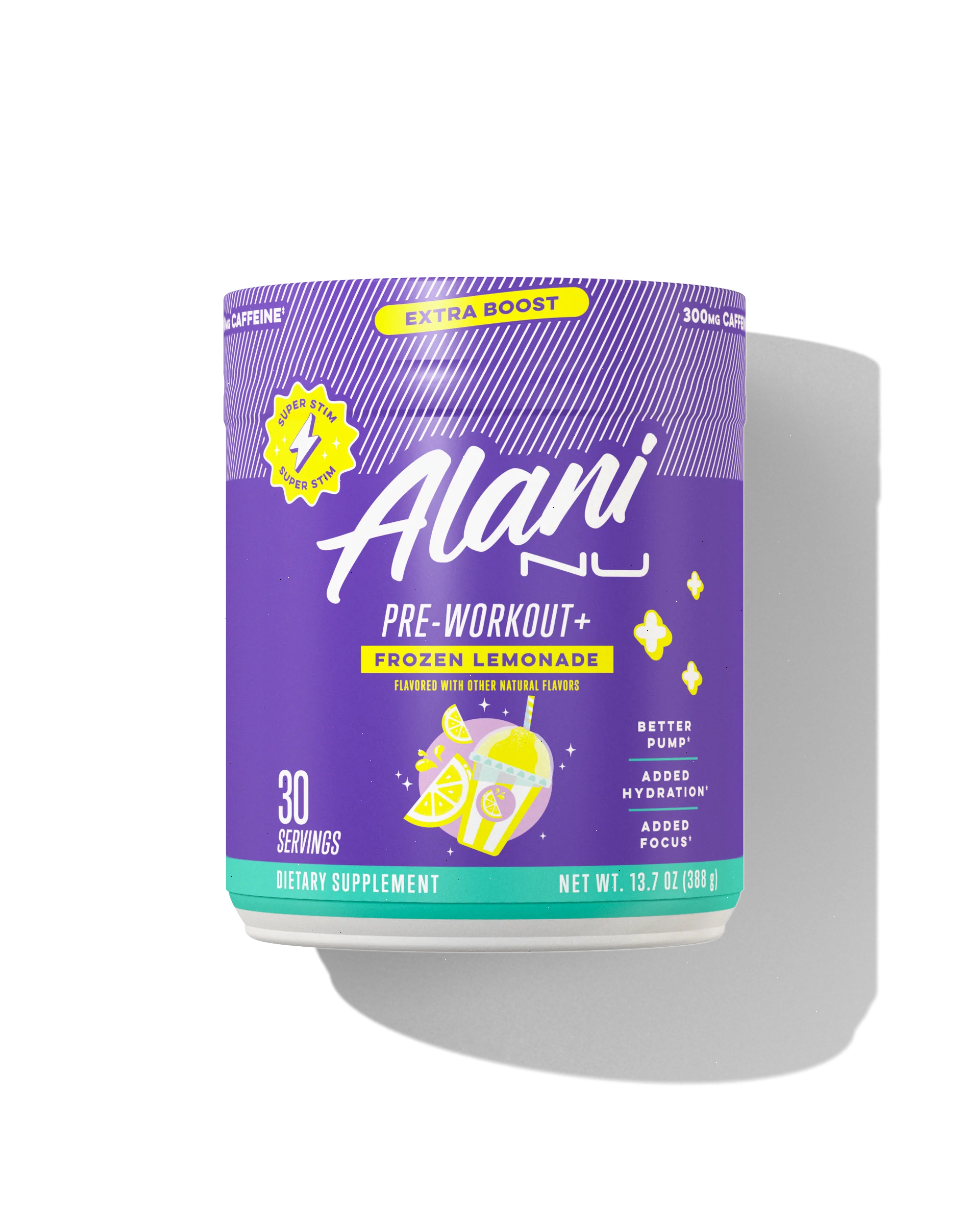 Turn your training up a notch with Pre-Workout+, our super-stim made to motivate. Bursting with the tart citrus flavor of summer lemonade, 300mg caffeine, added hydration, and ingredients that curb hunger and support a clear mind, you're sips away from becoming your new fav athlete!
