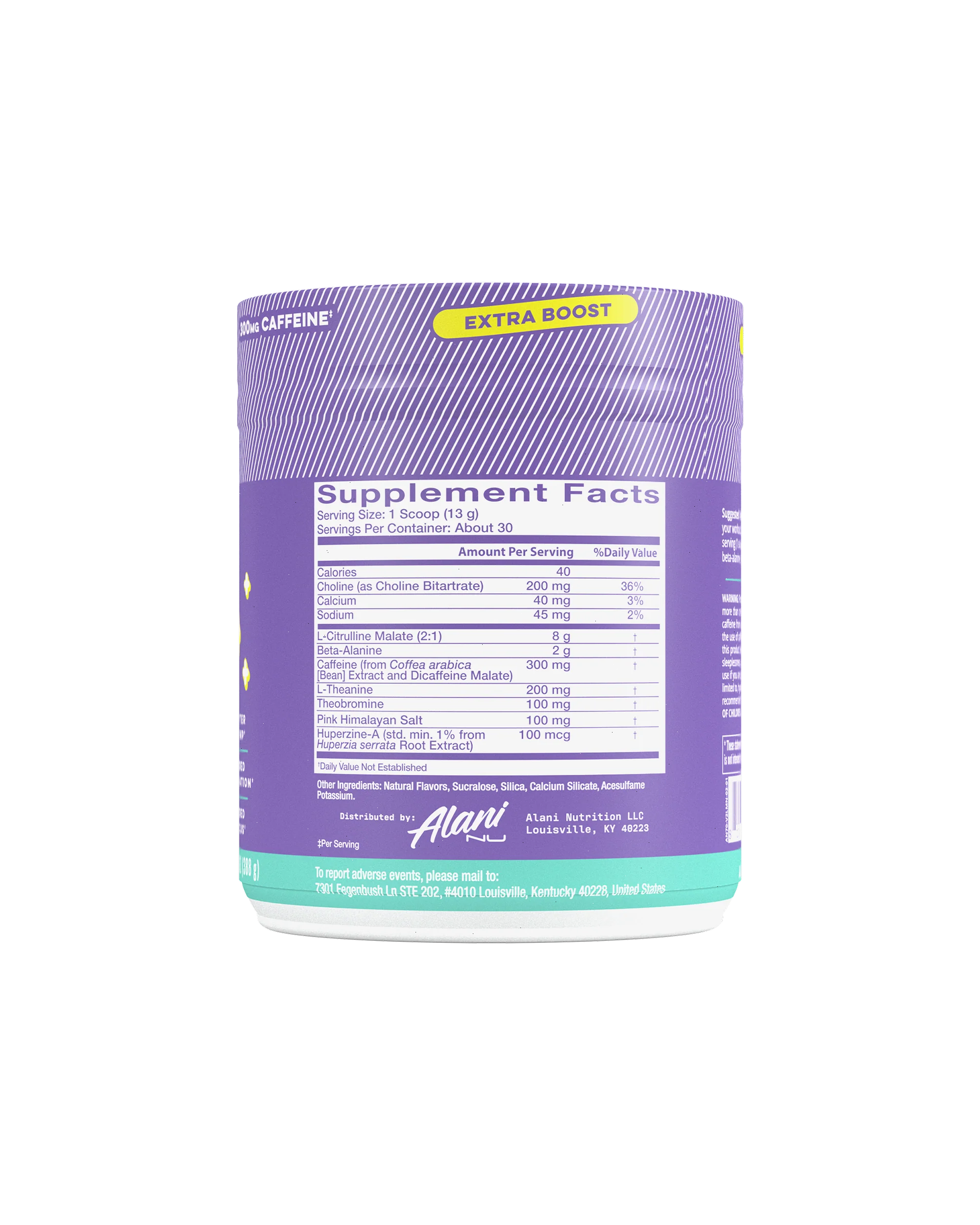 | Ingredients: Natural Flavors, Sucralose, Silica, Calcium Silicate, Acesulfame Potassium, Fruit and Vegetable Juice (for color), Beta-Carotene (for color). CONTAINS: 300mg of caffeine per serving. Not recommended for children, People Sensitive to Caffeine, Pregnant Women Who are Nursing. Daily caffeine consumption should be limited to approximately 400mg per day from all sources.* * These statements have not been evaluated by the Food and Drug Administration. This product is not intended to diagnose, treat, cure or prevent any disease. | ||