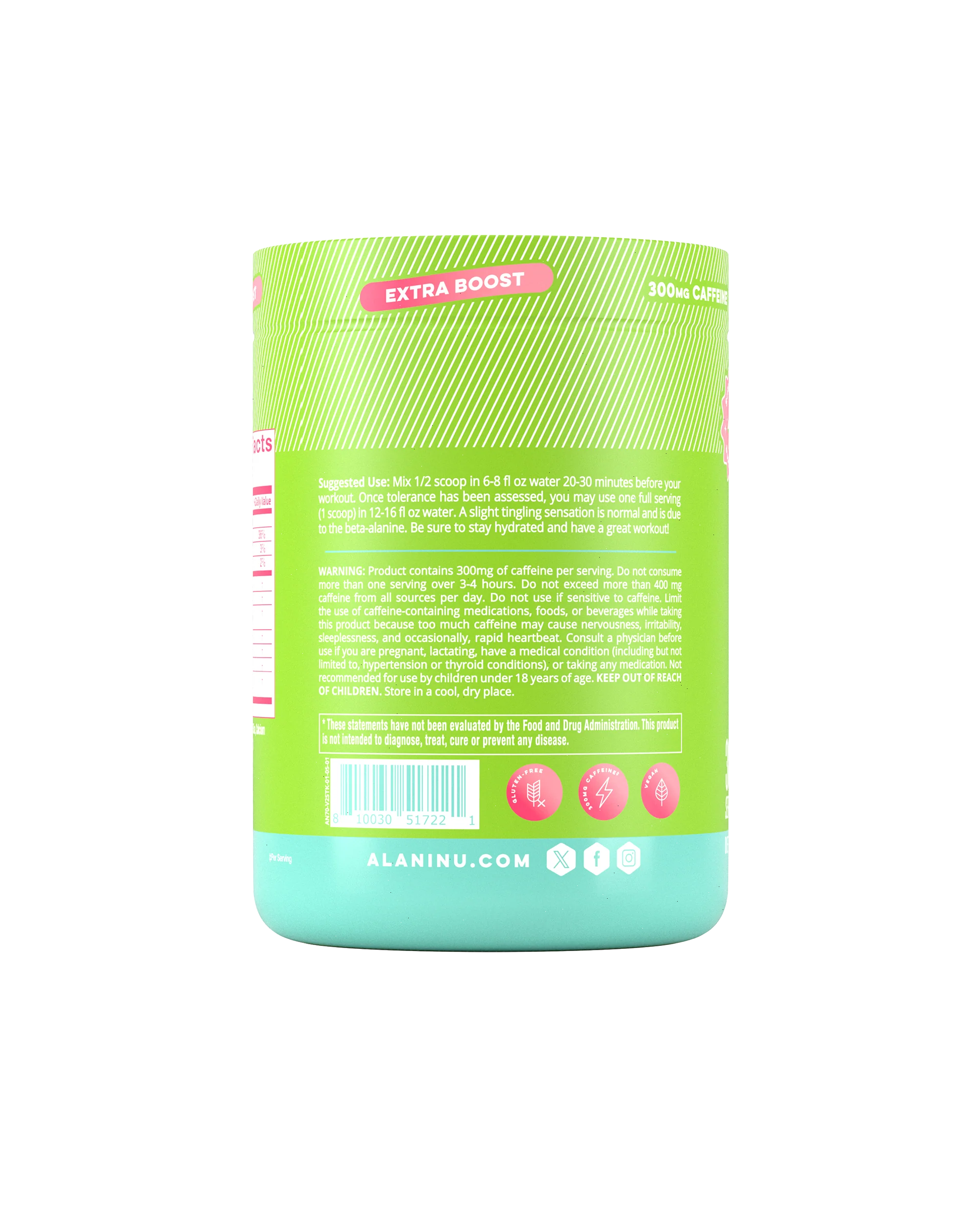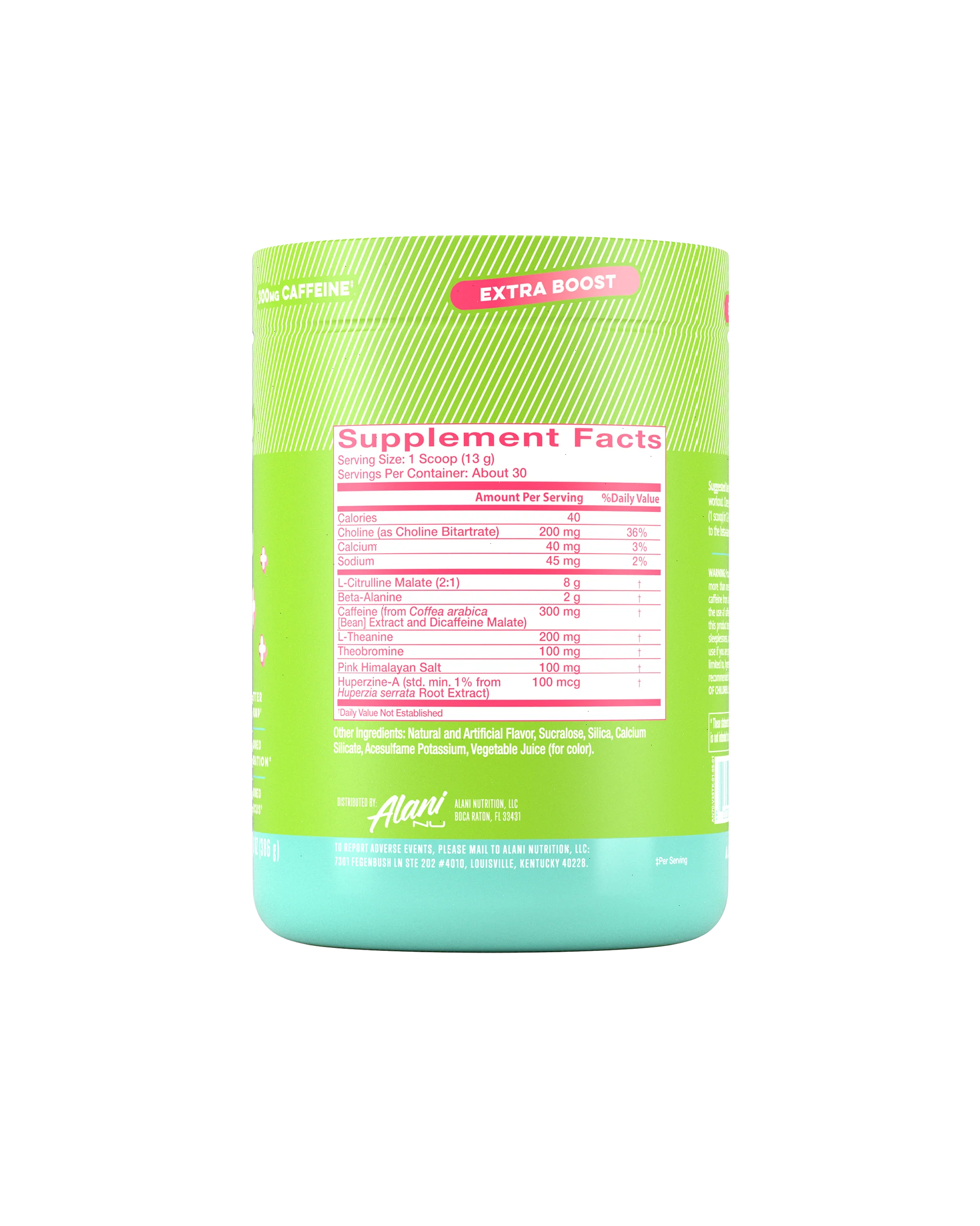 | Ingredients: Natural Flavors, Sucralose, Silica, Calcium Silicate, Acesulfame Potassium, Fruit and Vegetable Juice (for color), Beta-Carotene (for color). CONTAINS: 300mg of caffeine per serving. Not recommended for children, People Sensitive to Caffeine, Pregnant Women Who are Nursing. Daily caffeine consumption should be limited to approximately 400mg per day from all sources.* * These statements have not been evaluated by the Food and Drug Administration. This product is not intended to diagnose, treat, cure or prevent any disease. | ||