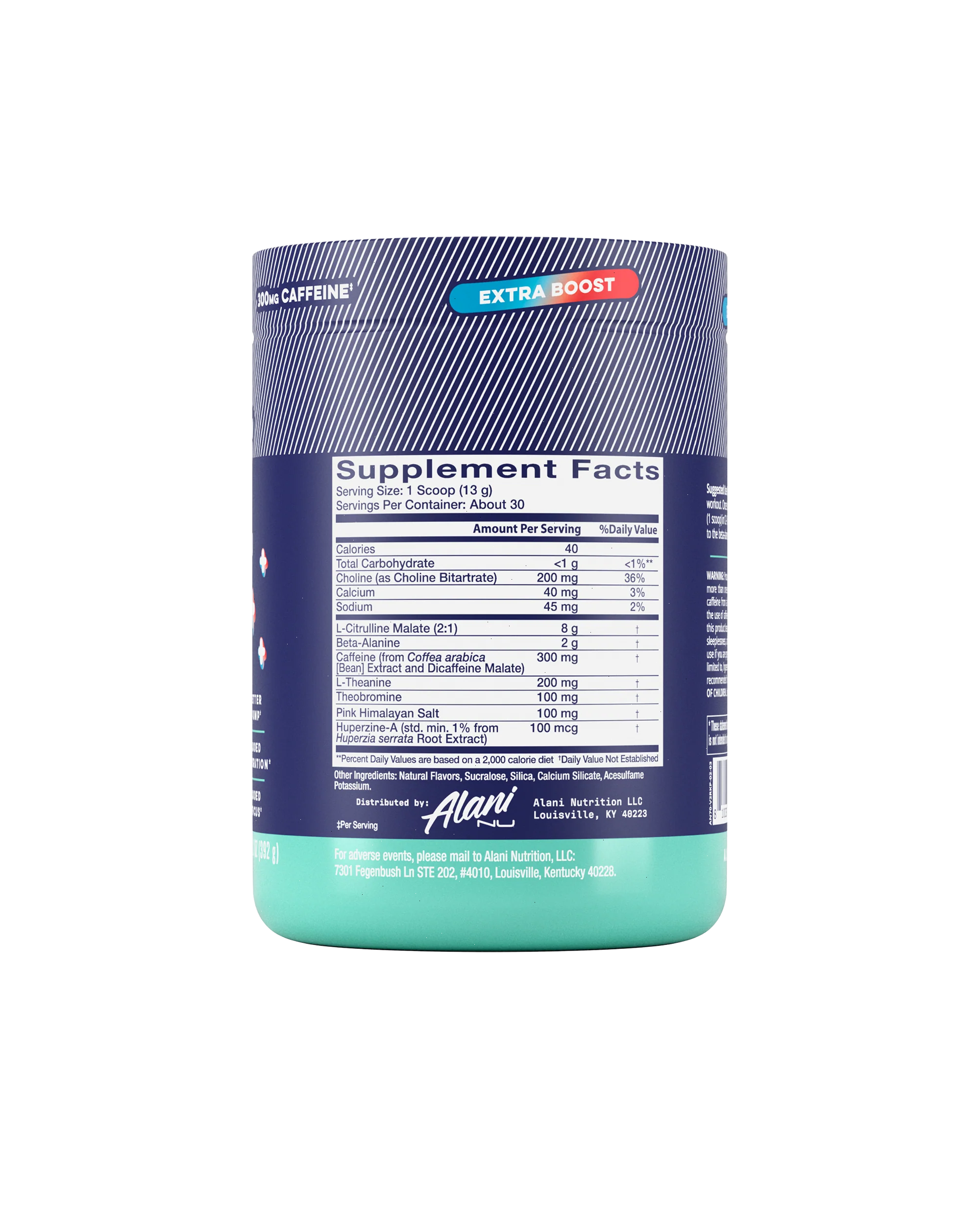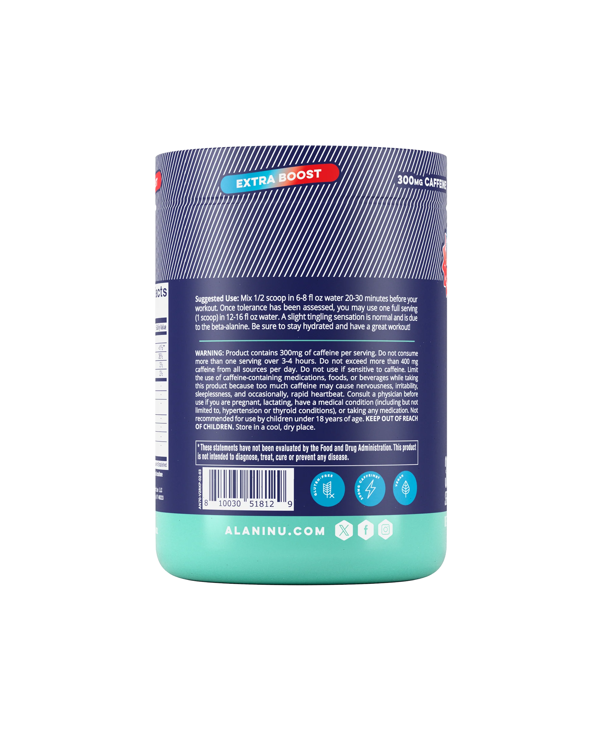 | Ingredients: Natural Flavors, Sucralose, Silica, Calcium Silicate, Acesulfame Potassium, Fruit and Vegetable Juice (for color), Beta-Carotene (for color). CONTAINS: 300mg of caffeine per serving. Not recommended for children, People Sensitive to Caffeine, Pregnant Women Who are Nursing. Daily caffeine consumption should be limited to approximately 400mg per day from all sources.* * These statements have not been evaluated by the Food and Drug Administration. This product is not intended to diagnose, treat, cure or prevent any disease. | ||