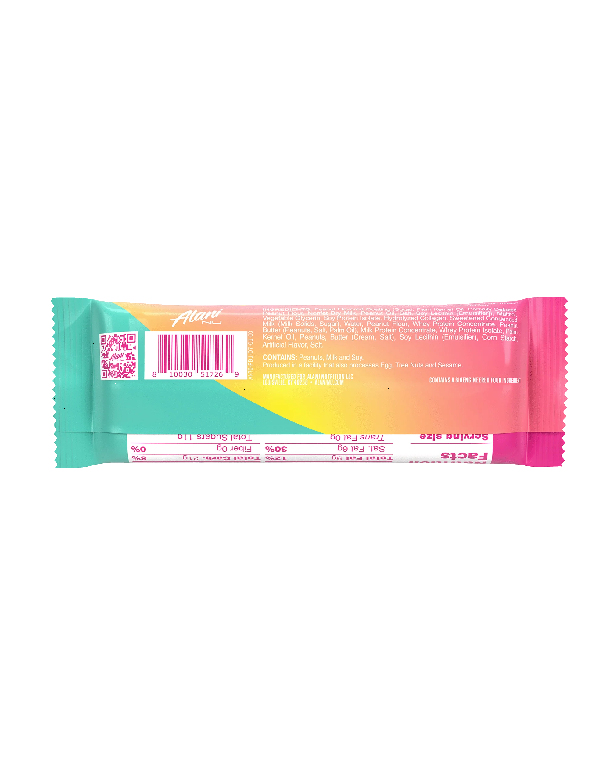 | Ingredients: Peanut Flavored Coating (Sugar, Palm Kernel Oil, Partially Defatted Peanut Flour, Nonfat Dry Milk, Peanut Oil, Salt, Soy Lecithin [Emulsifier]), Maltitol, Vegetable Glycerin, Soy Protein Isolate, Hydrolyzed Collagen, Sweetened Condensed Milk ( Milk Solids, Sugar), water, Peanut Flour, Whey Protein Concentrate, Peanut Butter (Peanuts, Salt, Palm Oil), Milk Protein Concentrate Whey Protein Isolate, Palm Kernel Oil, Peanuts, Butter (Cream, Salt), Soy Lecithin (Emulsifier), Corn Starch, Artificial Flavor, Salt. CONTAINS: Peanuts, Milk, Soy, and Bioengineered Ingredients. Store in a cool, dry place at 55° - 75° F. Protect from heat, light, and moisture. Do not purchase if seal is broken. | ||